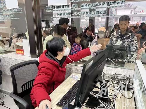 湖南日报·新湖南客户端1月24日讯(记者 高甜甜 通讯员 邓玲芳)1月24日早上7点,张家界东门吴家峪门票站售票大厅灯火通明,所有售票窗口全部开放,售票员严阵以待,准备迎接今天第一批购票入园的游客。