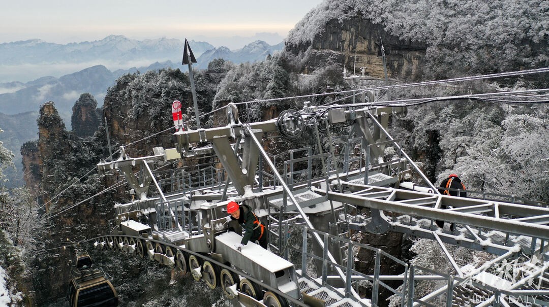 (天子山索道工作人员加强节前安全检查。吴勇兵摄)