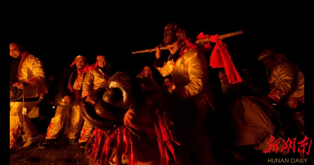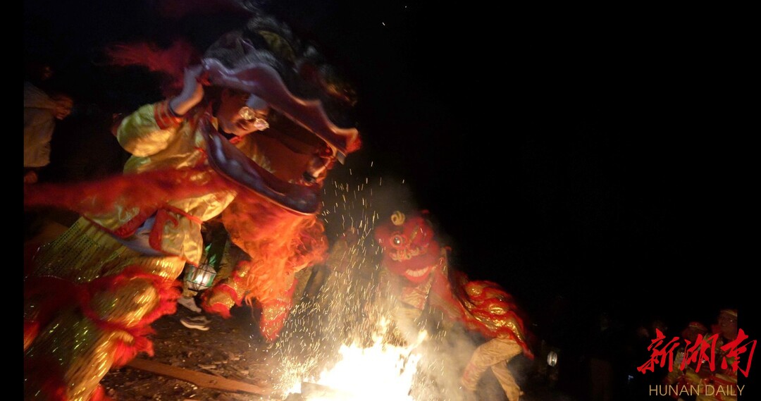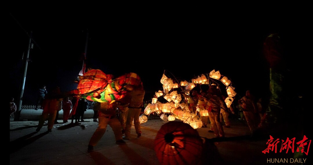 湖南日报·新湖南客户端1月28日讯(通讯员 李洁 朱毅)“唱龙灯歌嘞......”1月26日晚,会同县沙溪乡市田村上演一场年味十足、古色古香的传统舞吊龙。