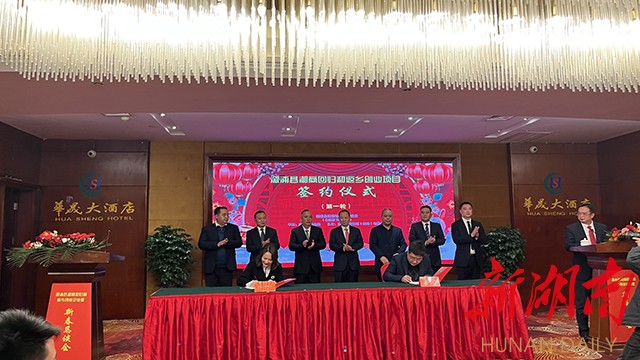湖南日报·新湖南客户端1月23日讯 (全媒体记者 雷鸿涛 怀化日报记者 底健 通讯员 黄渊博 冯奎 瞿云 陈小勇) 新年新气象,争先开新局。1月23日,农历大年初二,沅陵县召开“迎老乡 回故乡 建家乡”新春座谈会,现场签约沅陵碣滩茶出口澳大利亚、黑木崖农产品综合开发、沅陵县宠缘宠物用品生产3个项目,签约总金额30.5亿元。无独有偶,同一天,溆浦县举行湘商回归和返乡企业家新春恳谈会。会上,商贸物流园项目、瑜伽系列用品(EVA)发泡项目、年产5GW光伏组件项目等5个项目现场签约,总投资29.6亿元。沅陵、溆浦两县的8个项目,签约总金额60.1亿元,标志着今年怀化市“湘商回归”工作取得“开门红”。