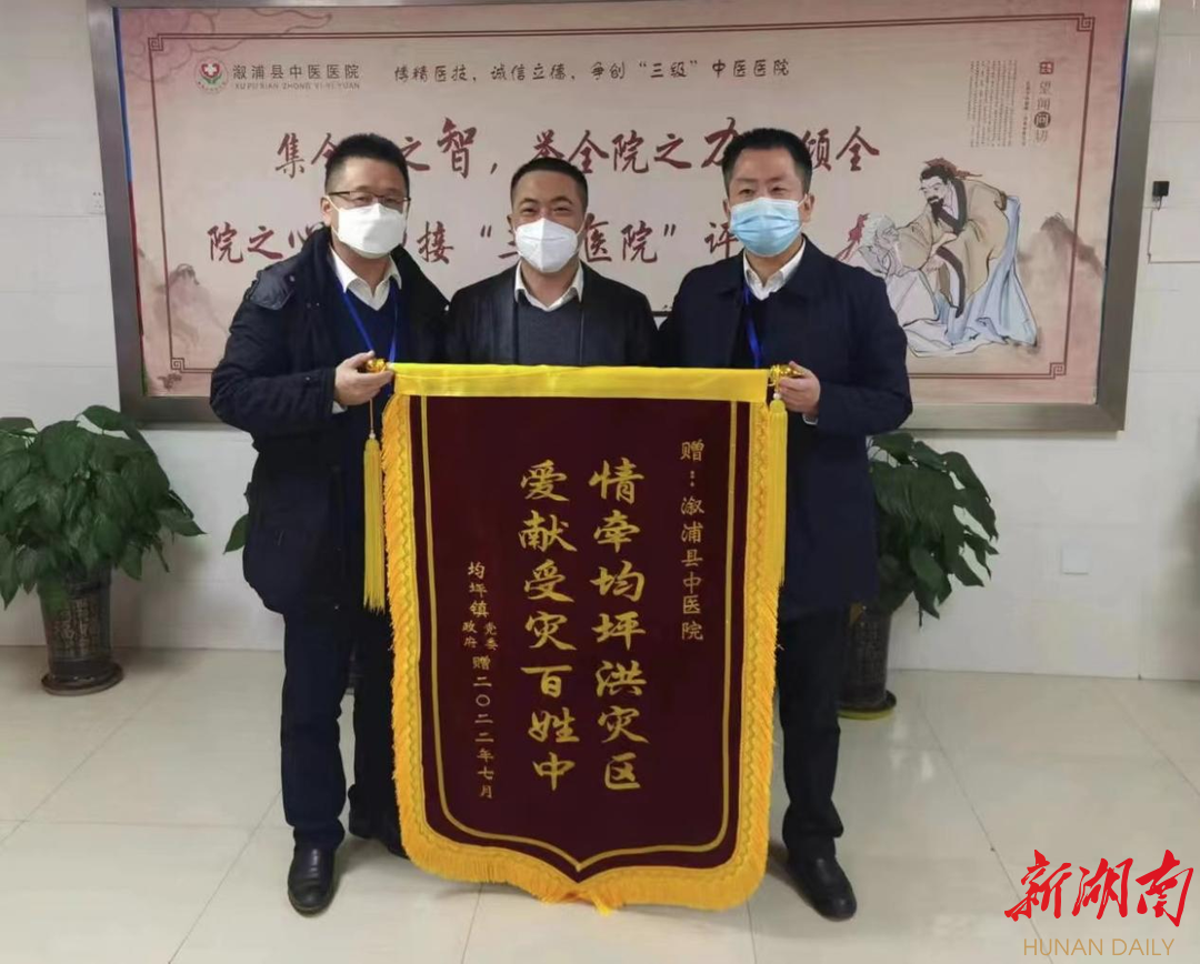湖南日报·新湖南客户端讯(通讯员:邓盈婕)近日,均坪镇党委书记将写着“情牵均坪洪灾区,爱献受灾百姓中”的锦旗送到溆浦县中医医院党委书记戴军和院长杨晓波手中,并代表均坪镇全体受灾群众感谢溆浦县中医医院在抗洪救灾过程中对均坪镇给予的全力帮助与大力支持。