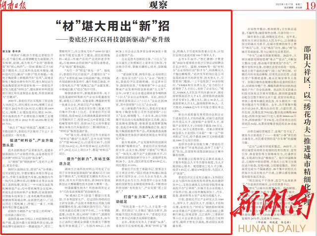 技术创新推动产品更新迭代,延链补链强链助力产业转型升级,这是娄底经开区深耕“材料谷”打出的“组合拳”。