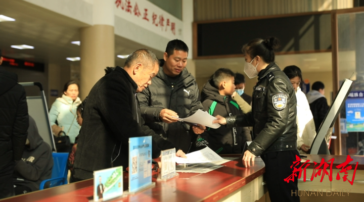 “合理调配警力到导办窗门咨询、引导、受理、发证,尽可能提高办证效率,全体民辅警提前上班,推迟下班,确保每不受理窗门“人员到位、工作到位、服务到位”,确保群众方便、快捷地办理和领取证件。”江华公安局人口与出入境管理大队负责人盘丽娟说。