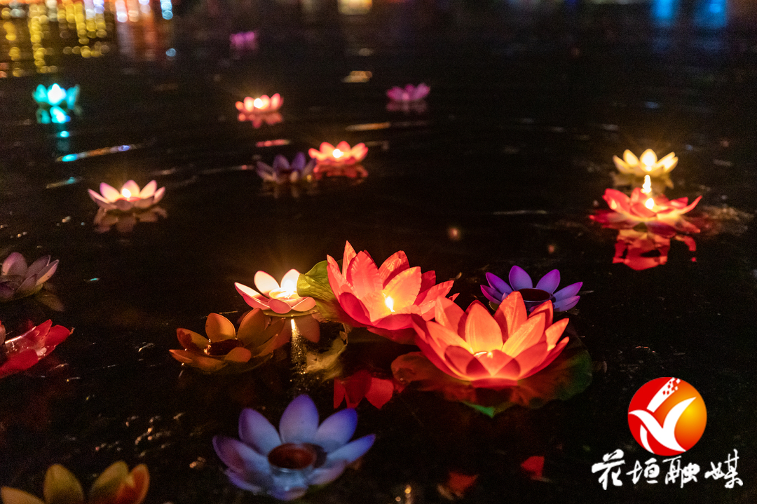 边城茶峒过去曾是水上码头,外出行船的人居多。人们通过放河灯,让其顺水漂流,以此表达对幸福、平安的祈求,祝福在外行船的亲人健康平安。500盏河灯被放入清水江,星星点点,似梦似幻,河灯载着祝福和心愿漂向远方。