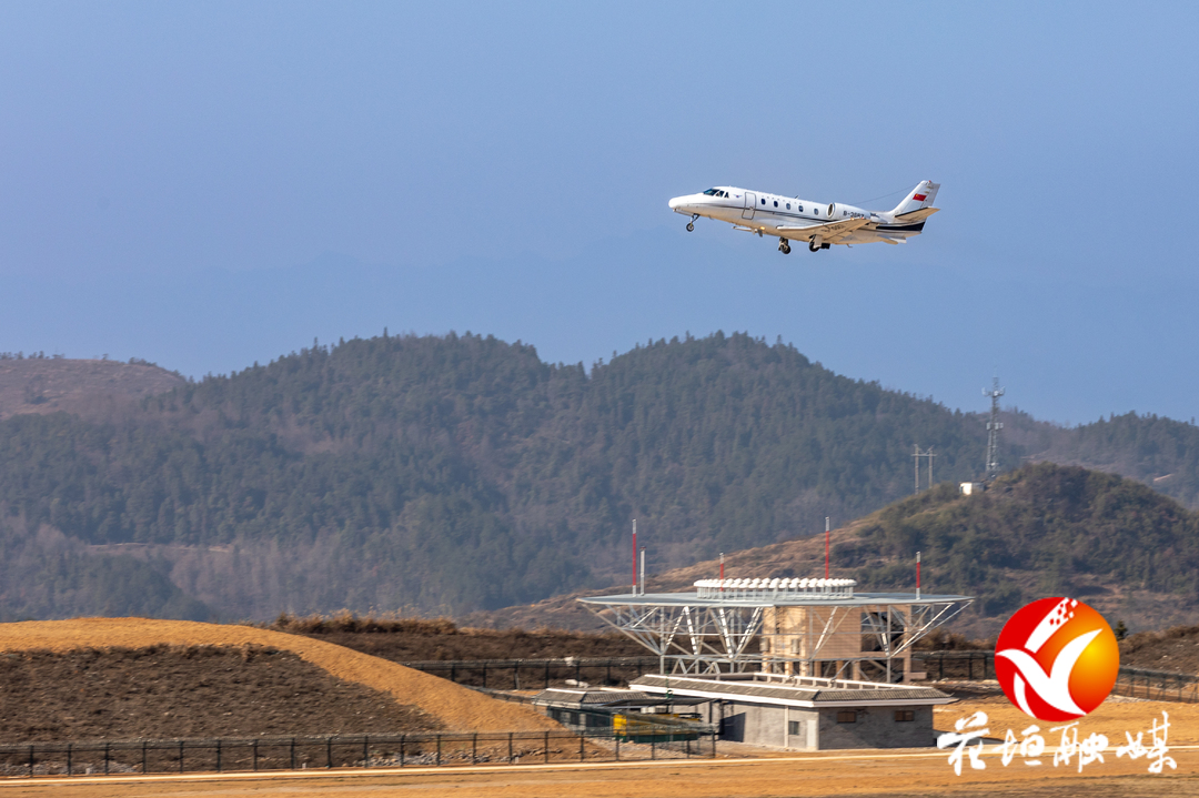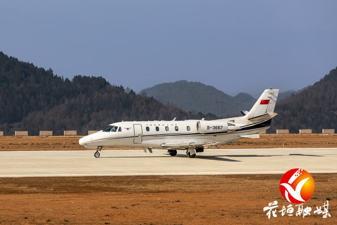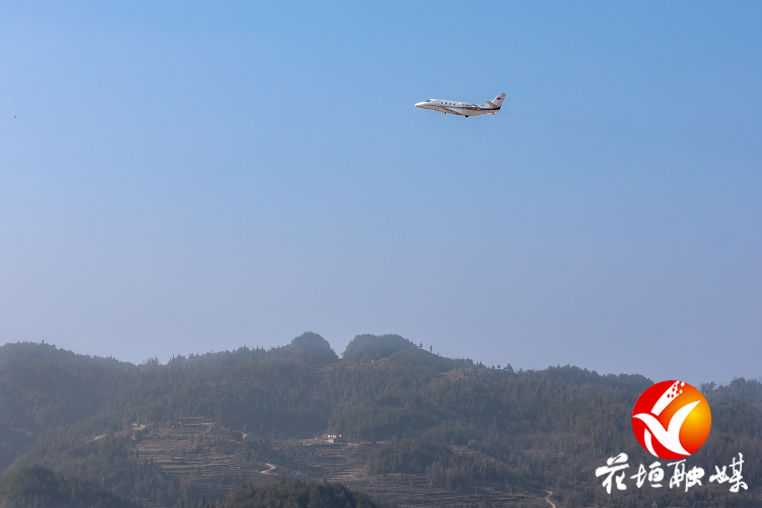 1月10日上午,中国民用航空飞行校验中心C560型校验飞机经过滑行后驶离地面,正式升空飞离花垣县。这标志着湘西边城机场投产校验飞行任务圆满完成。