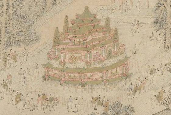 史料记载,唐睿宗的灯轮“高二十丈,衣以锦绮,饰以金玉,燃五万盏灯,簇之如花树”,唐玄宗的灯楼“高百五十尺,垂以珠玉,微风一动,铿然成声”,韩国夫人的灯树“高八十尺,竖之高山,上元夜点之,百里皆见,光朋夺月也”,均是规模巨大,耀眼夺目。