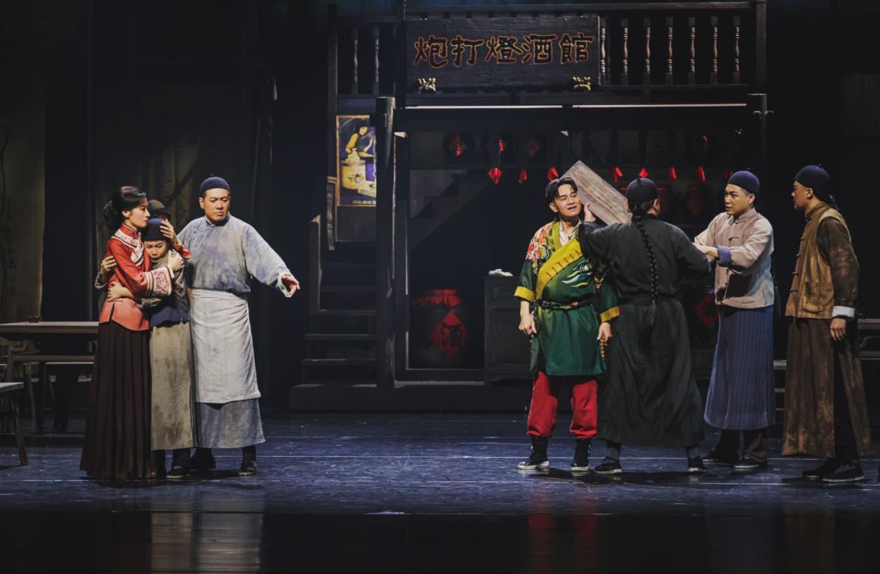舞台上,小说里的人物一个个跃然登场。酒馆里,善良智慧,敢爱敢恨的老板娘关二姐贯穿全剧,神一般存在的泥娃娃大哥、捏啥都栩栩如生的泥人张、敢穿一身黑衣刷墙的刷子李、来去无踪影的神秘酒婆、接骨能人苏七块、以牙认人的华大夫、文思泉涌口吐莲花的白四爷、变卖家产卖出花的蔡二少爷、唱红大上海的小杨月楼、只讲交情不过钱的义气大哥李金鏊、作恶多端的街头混混嘎杂张五…… 这些人物都需要演员们极强的表演能力去塑造,为此,天津人艺和德云社的众多实力演员轮番登场,其中就包括在《人世间》中扮演春燕妈的老戏骨徐松子。