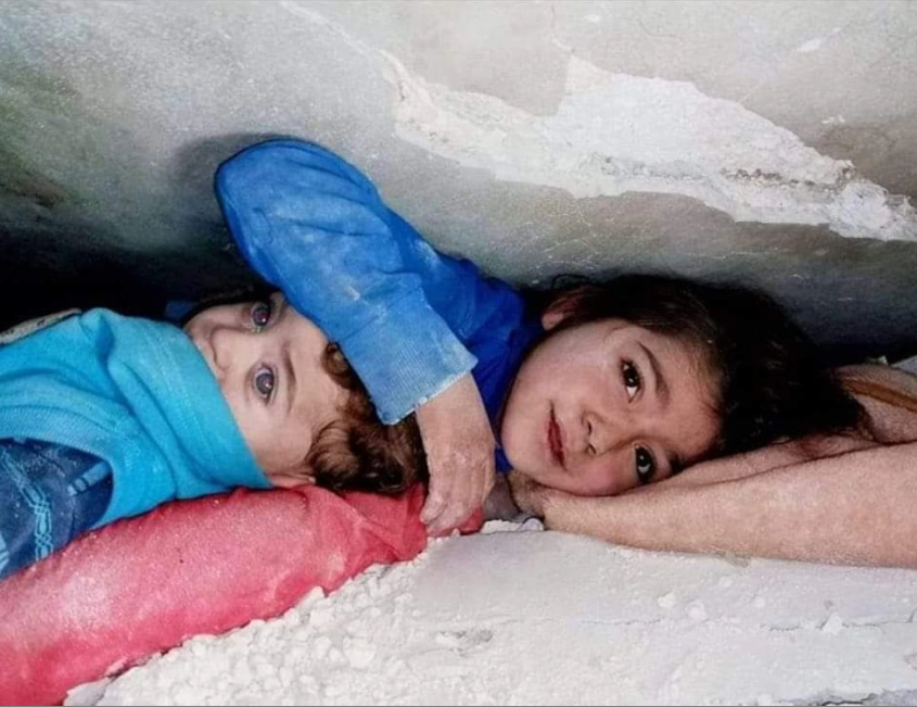 较早转发这对叙利亚姐弟照片的,是联合国经济及社会理事会(ECOSOC)代表穆罕默德·萨法。这是救援人员搜救时拍下的画面,小女孩和她的弟弟被困在瓦砾下的狭窄空间,女孩伸出手努力保护弟弟的头部。