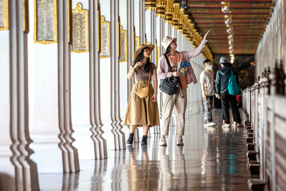 ↑2月7日,中国游客在泰国曼谷大王宫景区游览。新华社记者 王腾 摄