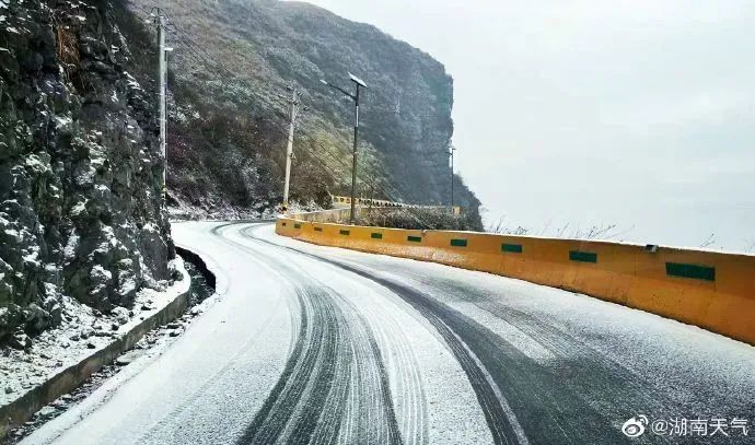 受冷空气影响,2月14日,湖南省湘西自治州龙山县八面山、保靖县吕洞山等高海拔地区下起大雪。(图源:湖南天气)