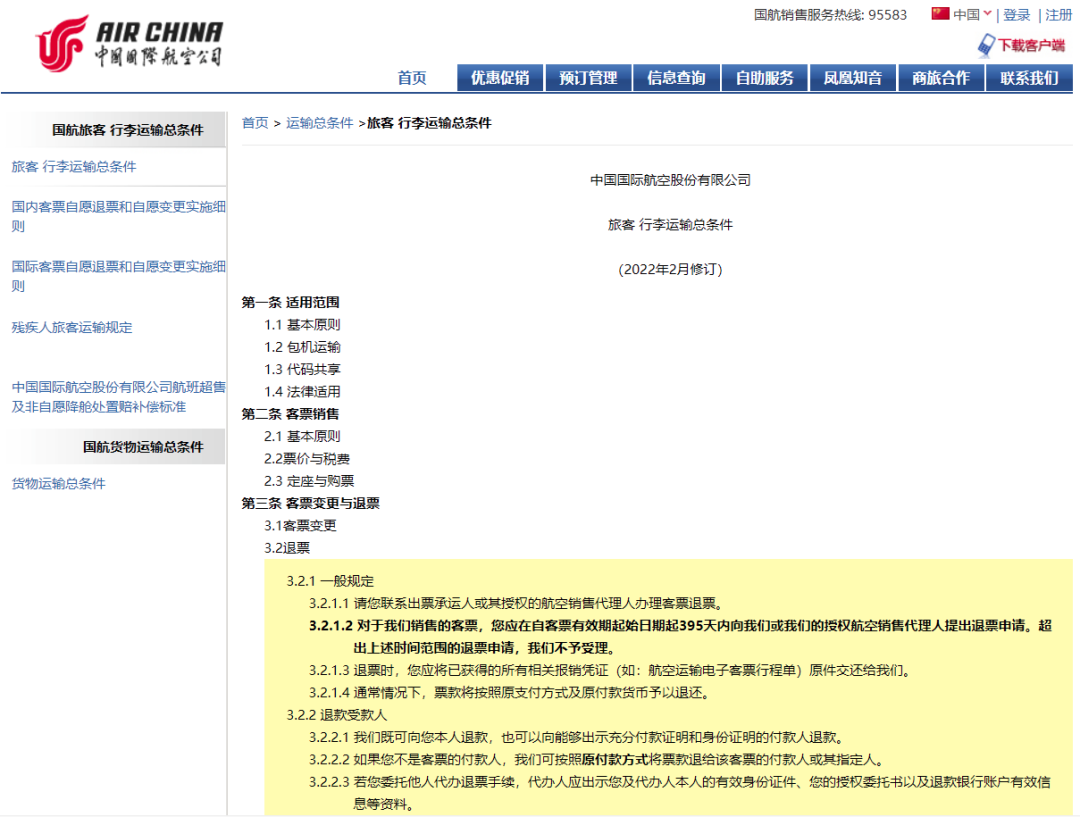 国航退票规则究竟是如何规定的?2月6日,记者登录国航官网,找到《旅客、行李运输总条件》中关于“退票”的相关规定。在“退票受款人”中看到如下3条规定: