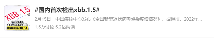2月15日,中国疾控中心发布通报,2022年12月以来,全国共发现本土重点关注变异株14例,其中1例XBB.1.5为国内首次本土检出。