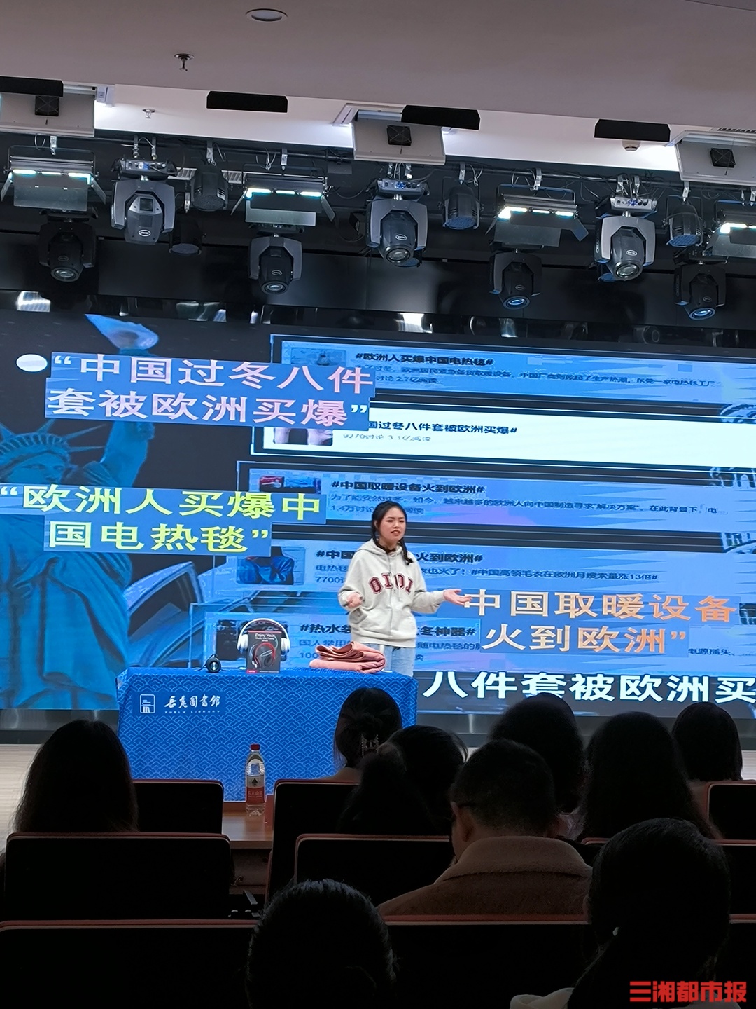 三湘都市报·新湖南客户端2月18日讯(文/图/视频 全媒体记者 王智芳 通讯员 邓然)今日,湖南涉外经济学院携手岳麓区侨联、岳麓区图书馆举办“毕夏科技杯涉外西语直播带货大赛”,鼓励大学生创新创业,锻炼西语学子电商平台产品展示能力、新媒体制作能力和语言综合运用能力,培养高素质复合型涉外人才,为西班牙语专业学生创造就业机会。