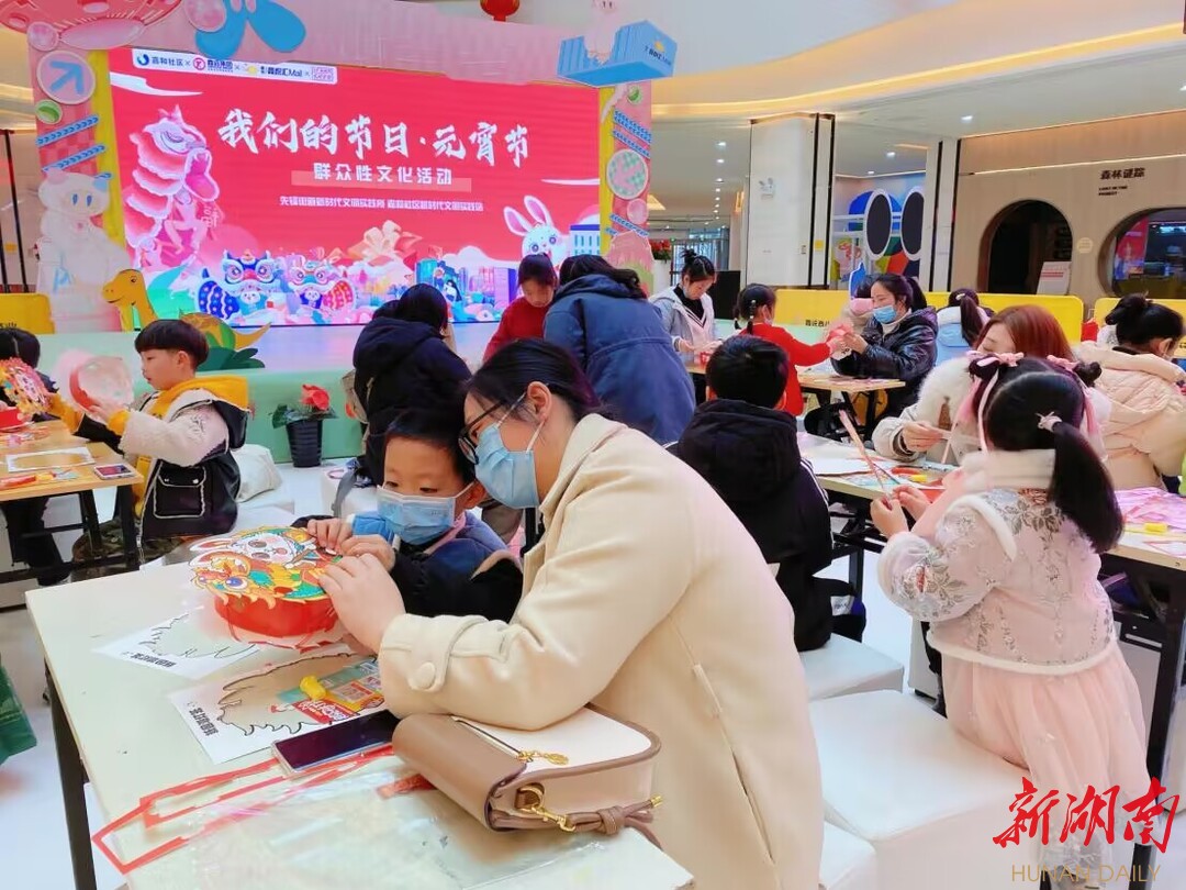 湖南日报·新湖南客户端2月5日讯(通讯员 胡梅莹 邓青)“孩子们,请问今年是十二生肖中的哪一年啊?”“我知道,是可爱的小兔子,兔年。”“那有谁知道,元宵节又叫什么节?”“我知道,叫上元节。”2月5日,在长沙市天心区先锋街道嘉和社区鑫远·鑫悦汇二楼商场中厅,小朋友们积极踊跃地回答着商场工作人员的提问,制作国潮兔子灯笼、抢答、品汤圆,其乐融融共庆元宵佳节。
