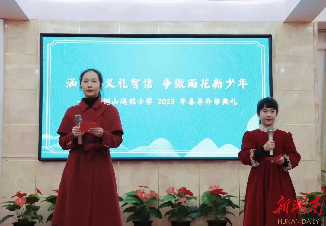 湖南日报·新湖南客户端2月6日讯(通讯员 吴友珍 刘禹彤 张可为)今天,长沙市雨花区枫树山鸿铭小学举办了以“涵养仁义礼智信,争做雨花新少年”为主题的开学典礼,活动全程以网络直播形式进行,各班级在教室内观看。
