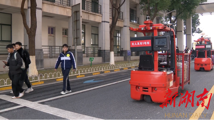 湖南日报·新湖南客户端2月16日讯(记者 李曼斯 通讯员 高妍)最前沿的科技,最接地气的BGM,最暖心的举动。今天,在湖南三一工业职业技术学院(以下简称“三一职院”)的校园内,两辆无人驾驶智能叉车正忙碌于校门和宿舍之间,为学生提供一站式行李运送服务。