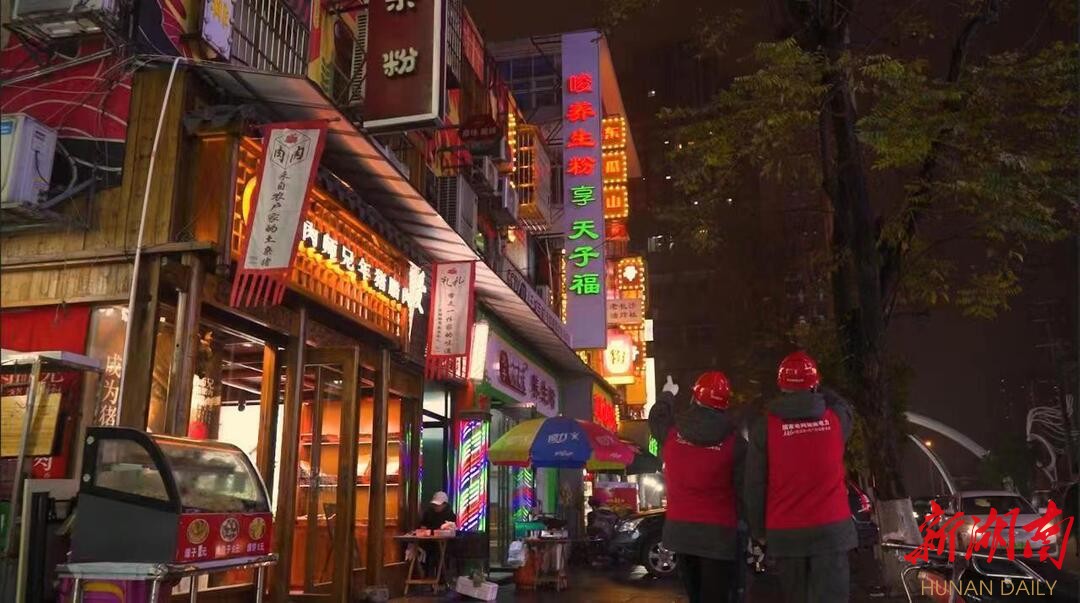 “可以吃到湖南14市州特色米粉”的湖南米粉美食一条街,是长沙打造湖湘文化的新名片以及网红打卡点,短短400米的老城区街道云集了包括米粉、小吃、饮品近50家门店,种类繁多,令人应接不暇。虽说是老街道,但放眼望去,电杆排列规范笔直,电线走向整齐划一,看不到一根杂乱的“蜘蛛线”,这都得益于三年前开展的韭菜园北路电力线路改造工程。