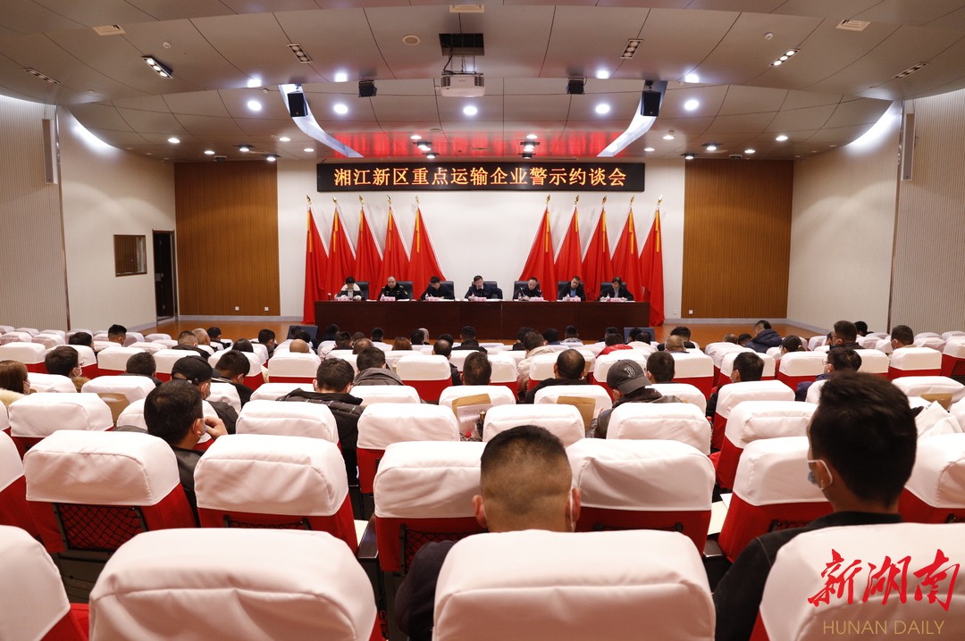湖南日报•新湖南客户端2月9日讯(记者 王晗 通讯员 何丹)2月8日下午,湖南湘江新区召开重点运输企业集中警示约谈会。湘江新区开发建设局(交通运输局)道路运输处、质安处、行政执法局固废处、岳麓交警大队、市交通行政执法局岳麓大队等部门负责人,以及辖区100余家重点运输企业负责人参加会议。湘江新区开发建设局(交通运输局)党组成员、岳麓区交通运输局局长王军主持会议并讲话。