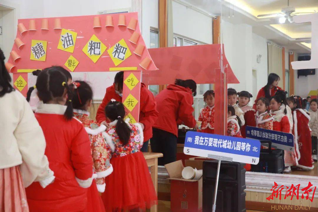 为大力弘扬中华优秀传统文化,园所匠心设计了长沙馆、上海馆等展馆,孩子们不仅可以品尝糖油粑粑,感受潮流文化,还能学习写“福”字。现场气氛热烈,受到孩子们的热烈欢迎。