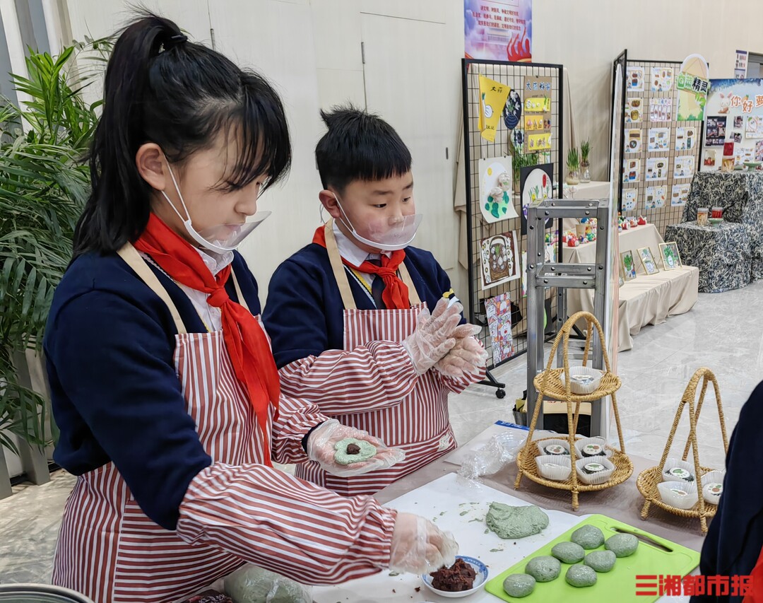 三湘都市报·新湖南客户端2月23日讯(全媒体记者 杨斯涵 黄京 通讯员 邹蓉)“老师好,这是我们做的青团,您尝尝怎么样?”2月23日,长沙市开福区少年宫,金鹰小学的孩子们一边制作着精美的茶点,一边邀请来参会的老师们平常自己的劳动成果,“看到老师们品尝我们自制的食物,感到非常自豪。”该校学生胡晨熙骄傲地说。原来,长沙市“双减”工作研讨会正在进行,“双减”应该怎么“减”?长沙各个学校又有什么样的新做法呢?