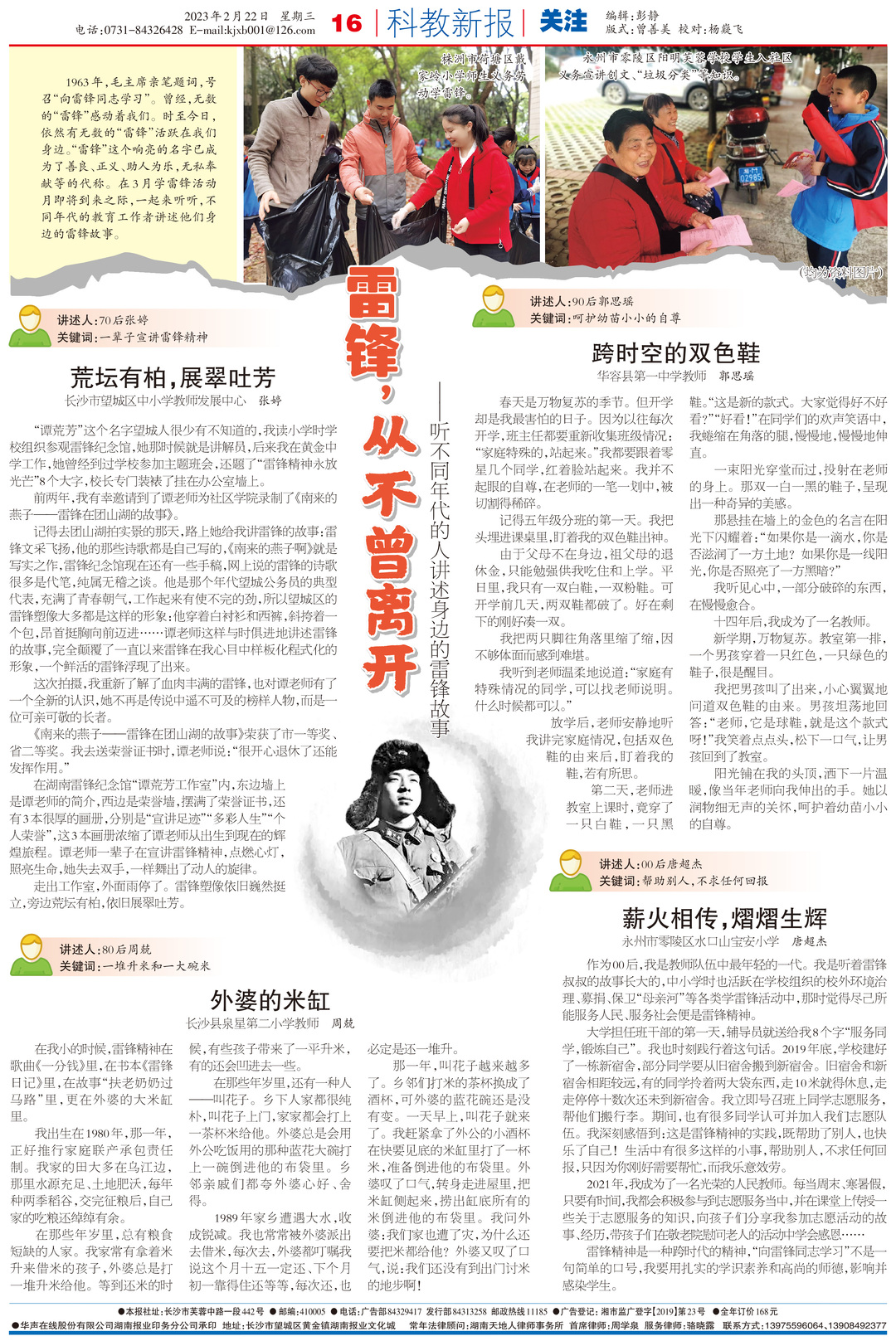 1963年,毛主席亲笔题词,号召“向雷锋同志学习”。曾经,无数的“雷锋”感动着我们。时至今日,依然有无数的“雷锋”活跃在我们身边。“雷锋”这个响亮的名字已成为了善良、正义、助人为乐,无私奉献等的代称。在3月学雷锋活动月即将到来之际,一起来听听,不同年代的教育工作者讲述他们身边的雷锋故事。