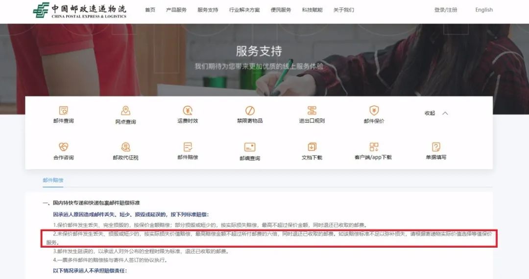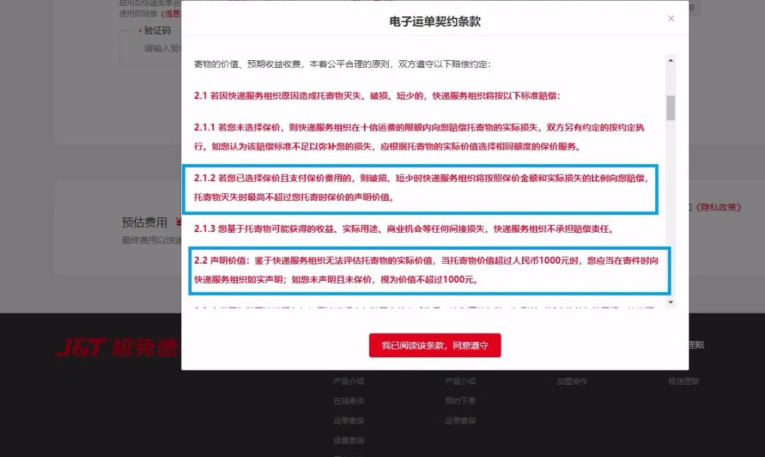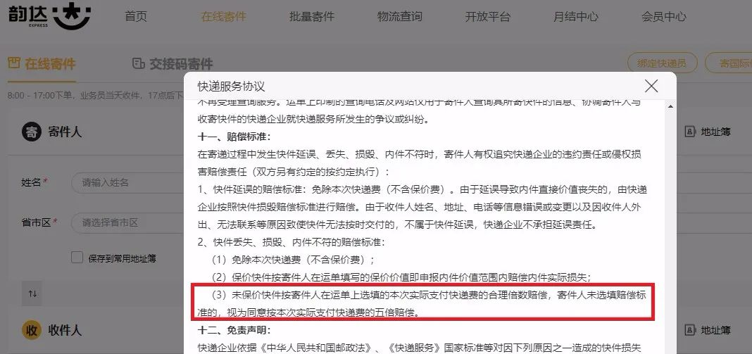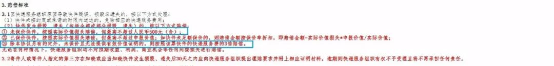 中消协点评的“已保价快递的赔偿”不公平格式条款。