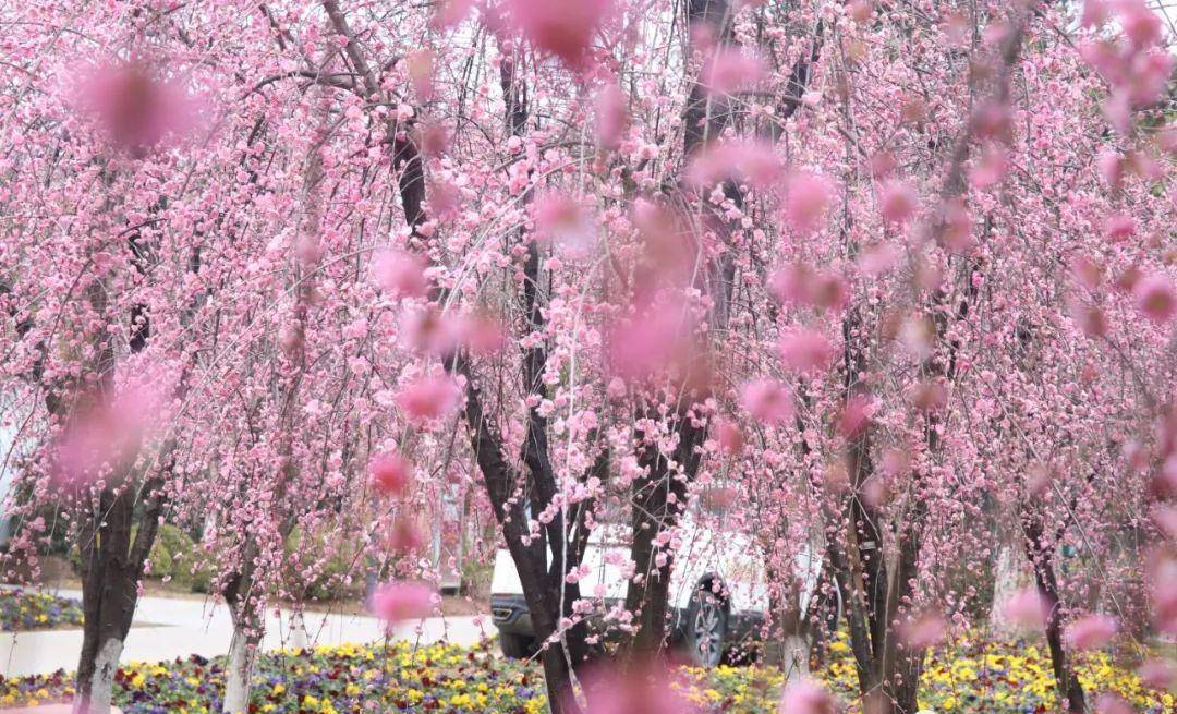要说这个季节的花,梅花必不可少。盘龙大观园“宫粉开运”垂枝梅花已悄然绽放,暗香浮动。它的枝条自然下垂,树姿潇洒飘逸,如瀑布般倾泻而下,与古色古香的仿古建筑交相辉映,别有一番风韵。游客或在花间驻足,或伫立赏梅,或入林拍照,尽情感受春天的气息。