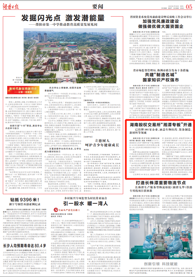 湖南日报·新湖南客户端2月27日讯(记者 肖洋桂 通讯员 肖莹 王玮炜 何倩)2月27日,湖南省区域性股权市场“湘潭专板”开通,来自湘潭地区的101家挂牌企业正式集体入列,这是我省区域性股权市场首个市州专板。