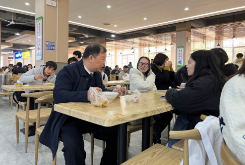 “你是哪里人啊?”“食堂饭菜贵不贵?”“新学期有什么打算?”……校领导与同学们一起排队打饭,在餐桌上与同学们亲切交谈,详细询问大家假期生活以及来校后的学习、住宿和饮食等情况。同学们也放下平日的拘谨,倾诉自己学习中的体会、生活上的建议以及思想上的困惑。