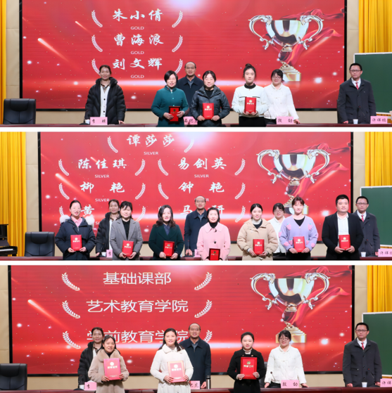 决赛中,李琼、湖南工业大学文学与新闻传播学院副院长邓统湘、湖南化工职业技术学院高级实验师刘小忠等担任评委,全体教师现场观摩。来自不同学院不同专业的老师们同台竞技,互相切磋,通过无学生教学片段展示和现场答辩两个环节,展现良好的教学风采和教学设计、课堂实施、教学评价等能力,赢得全程观赛的领导和老师们的阵阵掌声。经评委合议,朱小倩、曹海浪、刘文辉等3位老师获一等奖,陈佳琪、易剑英等7位老师获二等奖,基础课部、艺术教育学院、学前教育学院等院部获优秀组织奖。