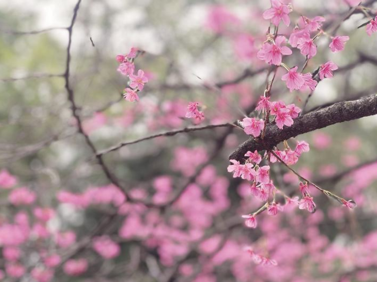 一路寻春,最吸引市民游客关注和讨论的,还是石峰公园蔷薇园内一株“天赋异禀”的山樱花。和公园里其它“羞答答”的樱花树不同,这株树上玫红色的花朵已全部绽放。据悉,这株山樱花在此已有30年,年年都最早感知春意,争先报春。