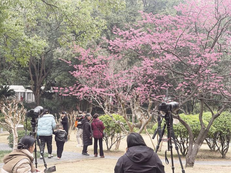 昨天上午,株洲河西湘江风光带近天元大桥段,成片的梅花盛放,暗香扑鼻而来;而在石峰公园蔷薇园内,红梅、白梅与早樱竞相绽放,吸引市民和摄影爱好者们带着“长枪短炮”前来赏景拍照。