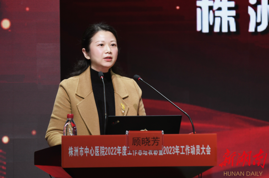 株洲市卫健委党委书记、主任顾晓芳对过去一年株洲市中心医院取得的成绩表示肯定。她希望株洲市中心医院对标高质量发展要求,争创湖南省公立医院高质量发展示范性医院;建好用好学科高地指挥部,打造融合学科集群,切实提升医疗服务水平和能力;探索创新,不断拓展服务的广度和深度,提升卓越医疗、护理、人文、管理等能力;加强“清廉医院”建设,持续打击行业不正之风,推动医院党风廉政建设走深走实。