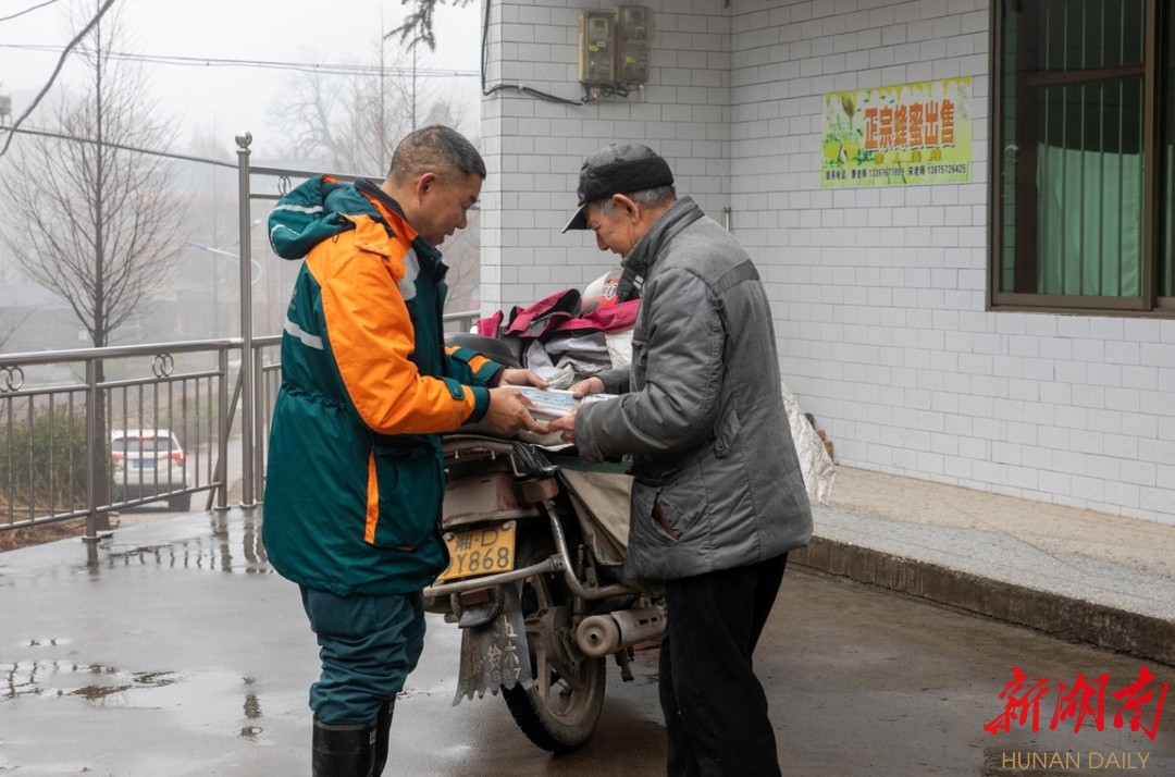 2月8日清晨6时许,夜色尚未褪去,天空飘着蒙蒙细雨,一辆摩托车穿行在南岳弯弯曲曲的山路上。骑车的人是乡邮员杨桢桂。此时,他正在赶往衡阳市南岳区南岳镇的路上。他家住在南岳区寿岳乡龙凤村,离坐落在南岳镇上的单位有30公里的车程,骑摩托车最快也得四五十分钟。