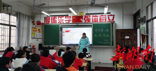 湖南日报·新湖南客户端2月8日讯(通讯员 刘跃进 刘梦蓉)为厚植学生爱党爱国的家国情怀,培育有担当有责任的新时代接班人,2月7日,衡阳市蒸湘区各校开展了形式多样、内容丰富的“开学第一课”。