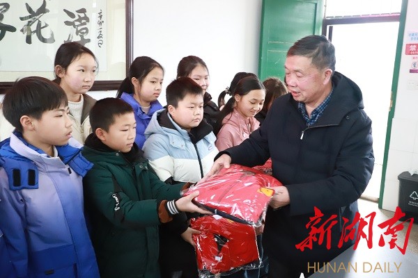 新湖南客户端2月8日讯(通讯员 朱顺清 蔡孝锋 冯细宇 施经纬)穿着新校服奔赴新学期、绘就新诗篇,2月6日上午,浏阳市高坪镇潭花完全小学的同学们接过崭新的校服,脸上洋溢着灿烂的笑容。