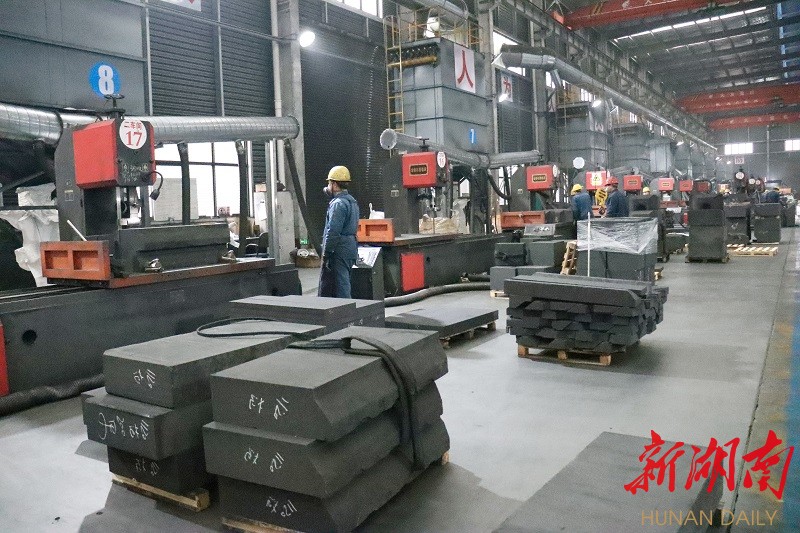 在福缘一期项目生产车间,100多名技术工人在130多套生产设备前娴熟操作,一块块石墨块原料经过切割、铣、镗等精深加工流程后,成为锂电池负极材料演练器具——石墨坩埚和箱式炉。