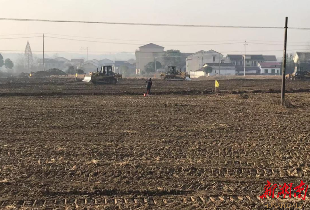 三星村磅塘组的田间地头,伴随着挖掘机轰鸣声,昔日高低不平、大小不一的破碎田地已逐渐消失,取而代之的是田成方、渠相通、路相连、旱能浇、涝能排的新型农田。三星村党总支书记傅岳峰胸有成竹,“我们的小田改大田正在克服天气全线施工,争取在3月底完工,不影响双季稻的种植” 。