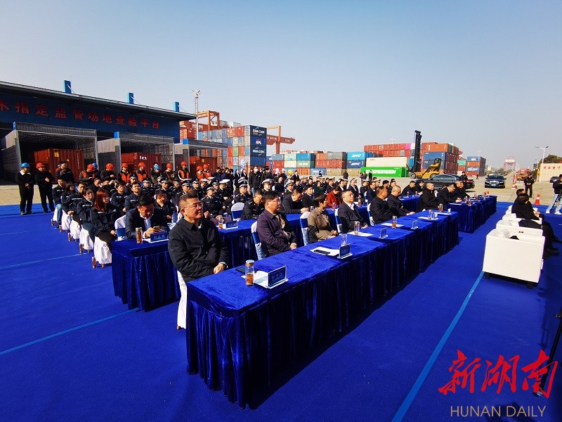 长沙海关副关长、党委委员韦泳亮说,将在岳阳市委、市政府的大力支持下,持续深化“放管服”改革,加快推进智慧海关建设,强化监管优化服务,实现顺势监管、智慧监管、精准监管、高效监管,做到管得住、放得开、通得快,服务岳阳进口原木贸易做大做强,推动湖南和岳阳经济社会高质量发展。省政府口岸办主任 邓卫平表示,进境原木指定监管场地建设,是国门生物安全的重要屏障,对促进岳阳城陵矶口岸提质发展,辐射带动周边木材产业可持续发展具有重要意义。