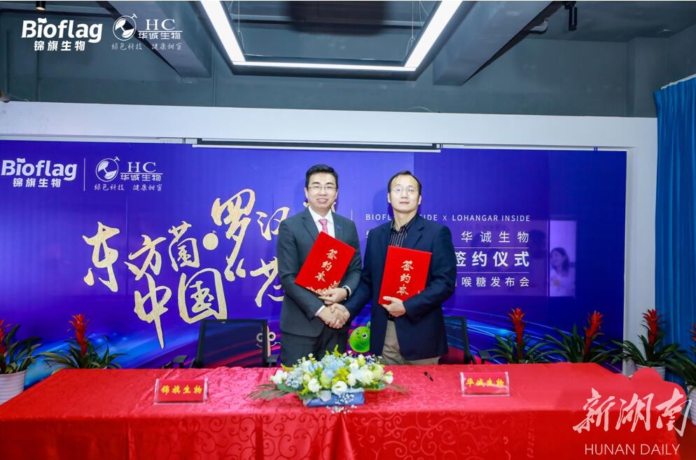 会上,华诚生物董事长黄华学与澳优中国区副总裁、锦旗生物董事长刘学聪共同签署战略合作协议。据了解,锦旗生物与华诚生物均成立于2008年,已分别在益生菌及罗汉果两个细分领域构建了集科研、生产、销售于一体的全产业链,目前已处于行业领先地位。未来,双方将基于相通的创新精神和经营理念,持续推进罗汉果代糖及益生菌综合解决方案,引领行业天然减糖“芯”风向。