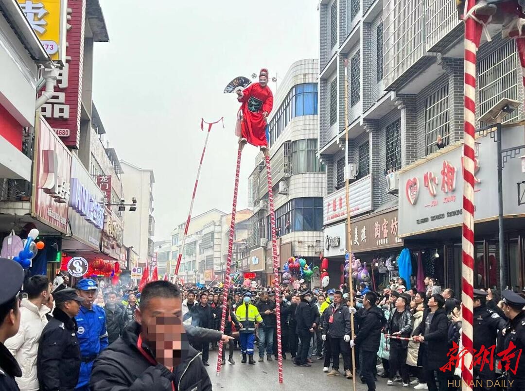 湖南日报·新湖南客户端2月4日讯(记者 刘永涛 徐典波)“他来了,他来了!”今天,湖南汨罗长乐古镇麻石街上,一年一度元宵节游街活动现场,“高跷王子”郑大军登场,引来热烈的欢呼声。