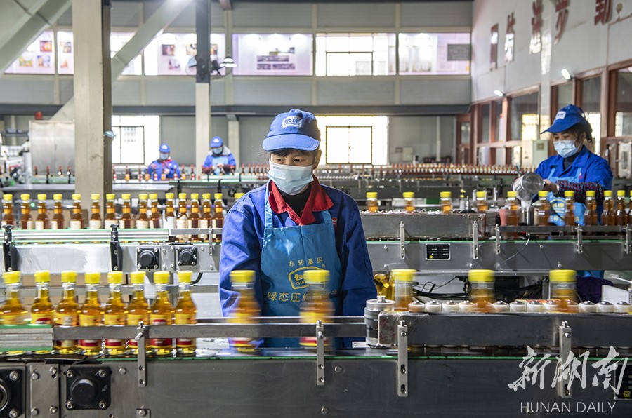 2月25日,湘阴县湖南省长康实业有限公司生产车间,工人在生产线上忙碌。近年,该企业持续布局芝麻油加工、食用油加工、调味品加工、茶叶种植加工等产业,着力提升品牌影响力,目前已成为湘阴新片区绿色食品加工龙头企业。 湖南日报全媒体记者 李健 摄