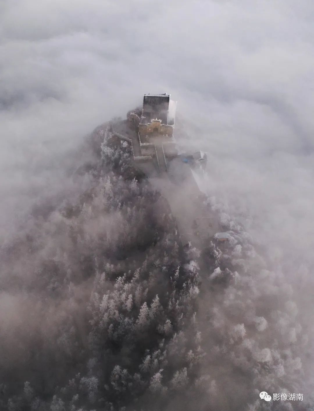 晶莹剔透的雾凇在云海中若隐若现