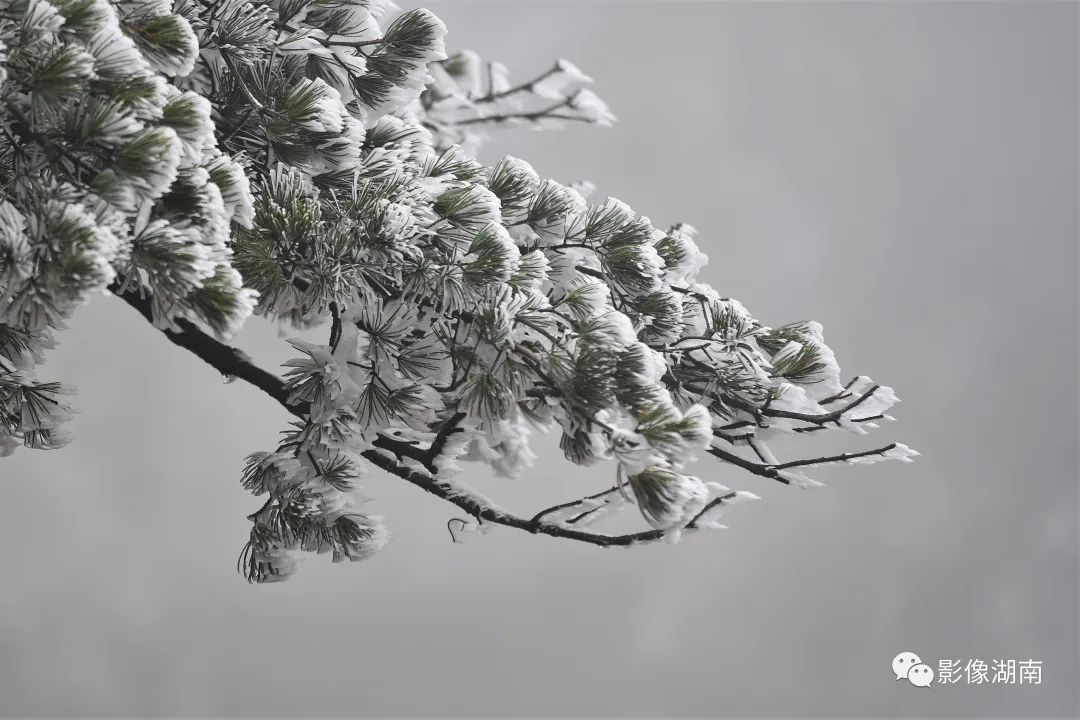 外围雪片如层层松叶般