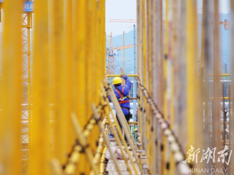 2月13日,永州市冷水滩区高科园声光电产业园标准厂房项目建设现场,工人在忙碌作业。该项目总投资约16.4亿元,总建筑面积约32万平方米,建设内容包括10栋标准厂房和2栋生活配套建筑,建成后可实现企业拎包入住。雷中祥 摄