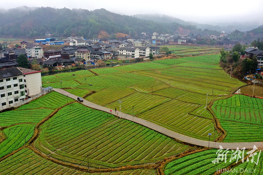 2月11日,通道侗族自治县坪坦乡坪坦村满眼春色,绿野、民居、村道,构成一幅色彩斑斓的乡村画卷。 李尚引 摄