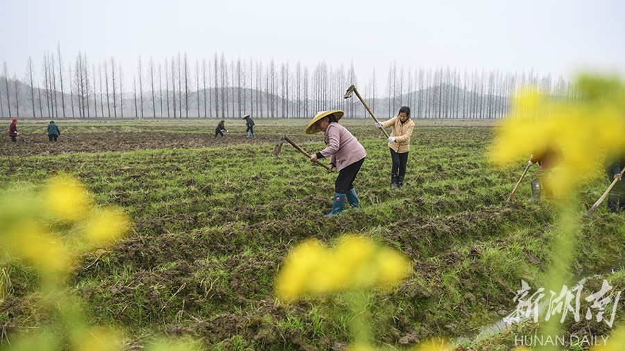 2月10日,常宁市罗桥镇南坪村,农民在整理田地。