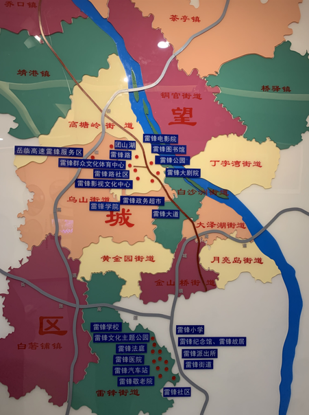 离开纪念馆,记者前往雷锋生前故居。房间里至今保留着老班长雷锋的床铺和军装。每天晚上广场上响起《学习雷锋好榜样》歌曲时,全体市民都会自觉一齐肃立默哀。