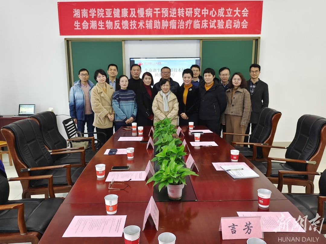 湖南日报·新湖南客户端2月13日讯(通讯员 刘泽)近日,湘南学院成立亚健康及慢病干预逆转研究中心,并召开生命潮生物反馈技术辅助肿瘤治疗临床试验启动会。