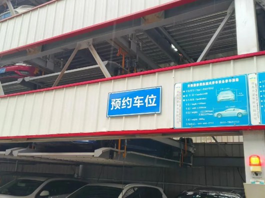 车库内,多处醒目位置贴着“预约车位”的标识。现场保安介绍,预约的都停在这里,一般只能预约这边。该立体停车库共有150个车位,出示预约码即可进入,离开时预约车辆无需现场缴费,可以直接出去。